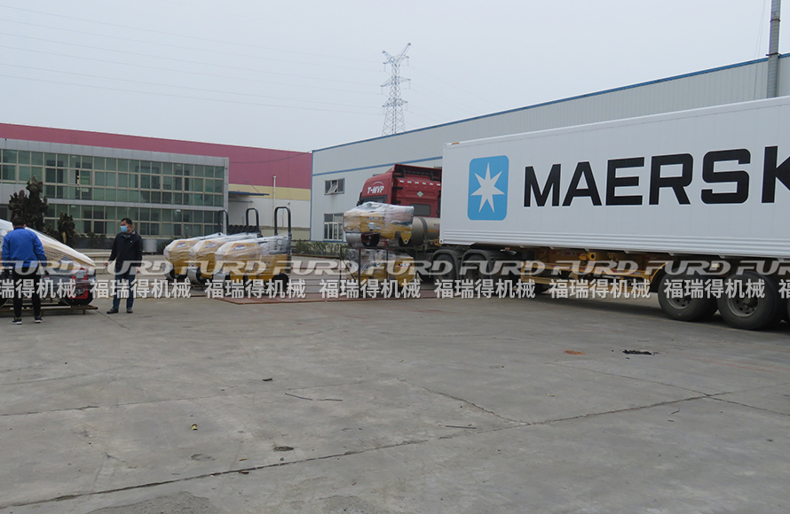 3月19日,福瑞得機械裝柜出口一批座駕壓路機。
