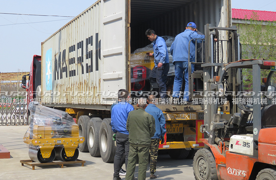 4月9日,福瑞得機械13臺手扶雙輪壓路機,1臺8噸重型壓路機和2臺座駕雙鋼輪壓路機分兩柜出口印度,這是福瑞得機械2021年度第8次大批量裝柜出口壓路機。