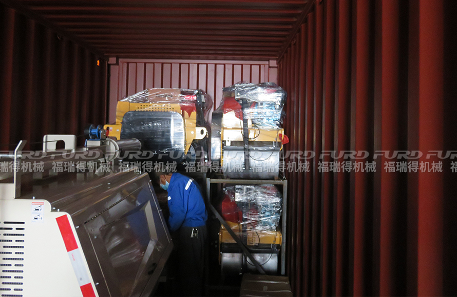 9月3日,福瑞得機(jī)械6臺(tái)手扶雙輪壓路機(jī)、和2臺(tái)9米移動(dòng)燈車裝車出口非洲。