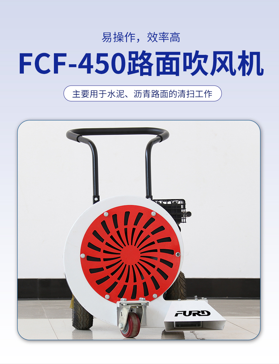 FCF-450路面吹風(fēng)機(jī)采用本田汽油動力,性能穩(wěn)定。風(fēng)葉動力平衡性強(qiáng),保證整體的穩(wěn)定性。大風(fēng)量,性能優(yōu)越。