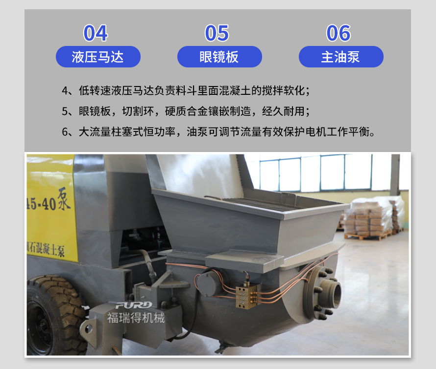 產(chǎn)品介紹: 1,大流量 采用加粗料缸,讓機械每一次循環(huán)出料多20% 2,效率高 移動便捷全部采用快接式管道卡,提高工作效率 3,便捷 本機可遠(yuǎn)程遙控,操作不受地點限制,更加人性化 產(chǎn)品用途: 坡道灌漿,水平地面,隧道澆筑,模