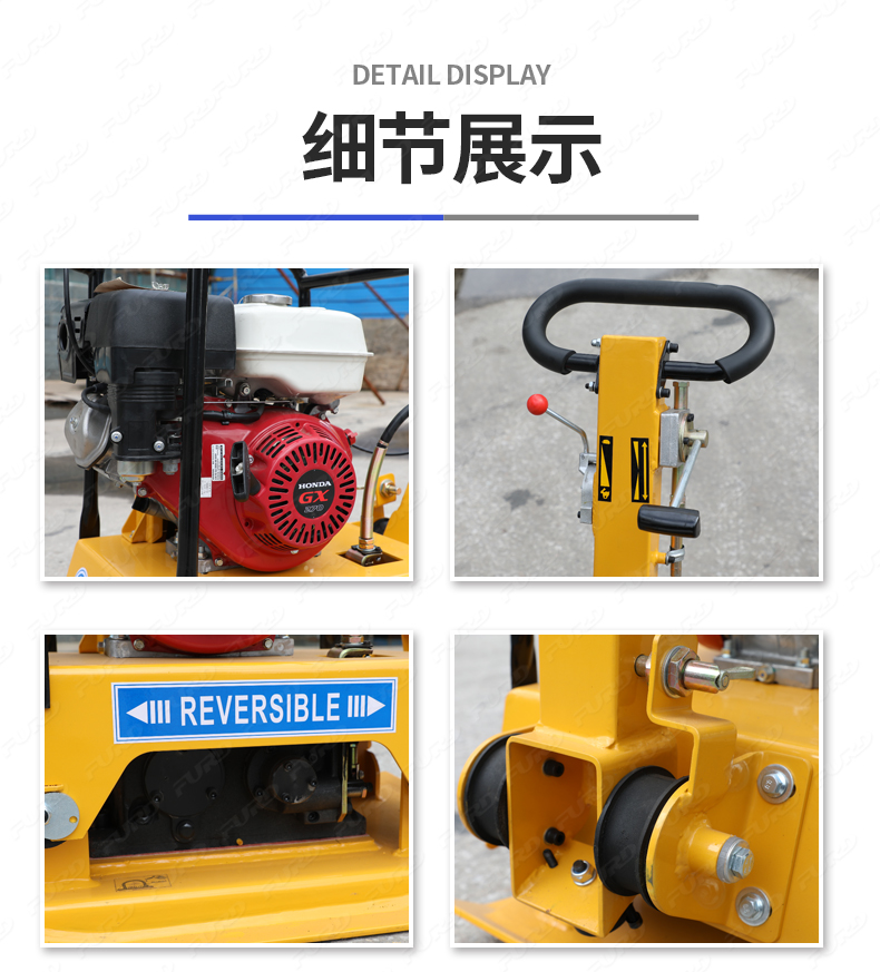 適用于路基邊緣、橋涵、管道、溝槽底部等狹長地帶的壓實(shí)。 本田汽油動(dòng)力,名牌品質(zhì)保證。
