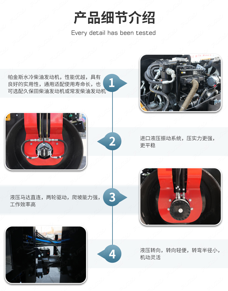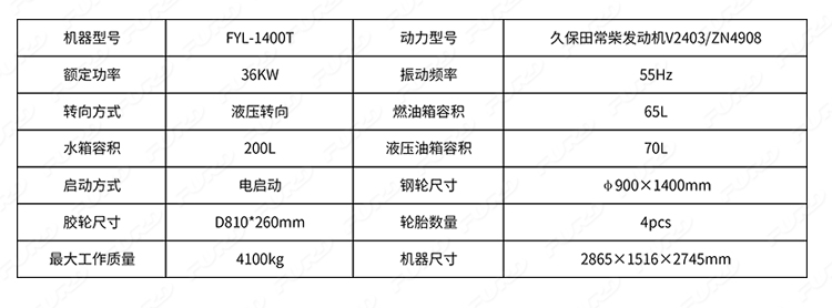 FYL-1400T為橡膠輪胎振動壓路機(jī),該壓路機(jī)前有鋼輪,后有橡膠輪,結(jié)合鋼輪和輪胎壓路機(jī)的優(yōu)點(diǎn),具有更高的工作效率。